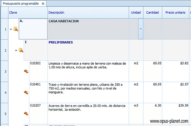 Marca los conceptos o recursos mediante una columna y lo puede hacer para cualquier obra o proyecto.